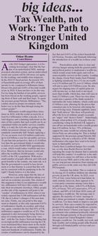 This piece required me to under take research into opinion polling, policy positions from all of the major parties and economic data, on how a wealth tax would affect fiscal revenue for the government.