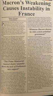 A piece focused on the political instability in France caused by the Prime Ministerial ‘musical chairs’ and lack of bipartisan support for the budget.